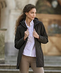Four-way stretch fabric. Inner pocket. Large front pockets with warm lining. Waterproof with taped seams. Two-way SBS zip. Magnetic button closure. Prepared for embroidery. Certified recycled polyester.